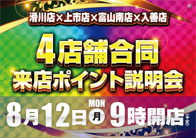 12日 4店舗合同来店ポイント交換説明会 9時開店予定