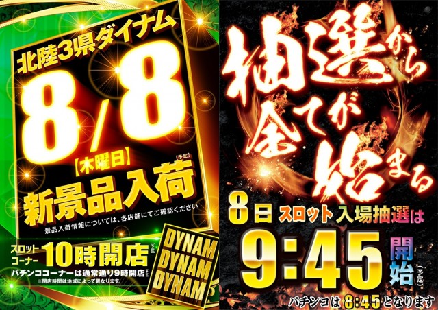 8/8富山県ダイナム スロットコーナー10時開店予定!