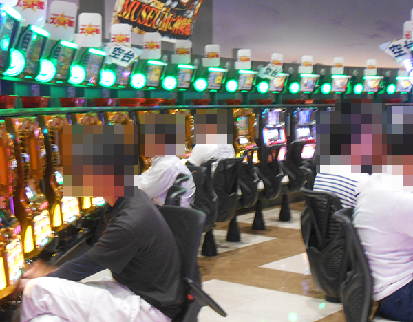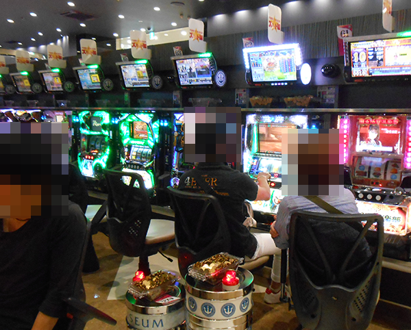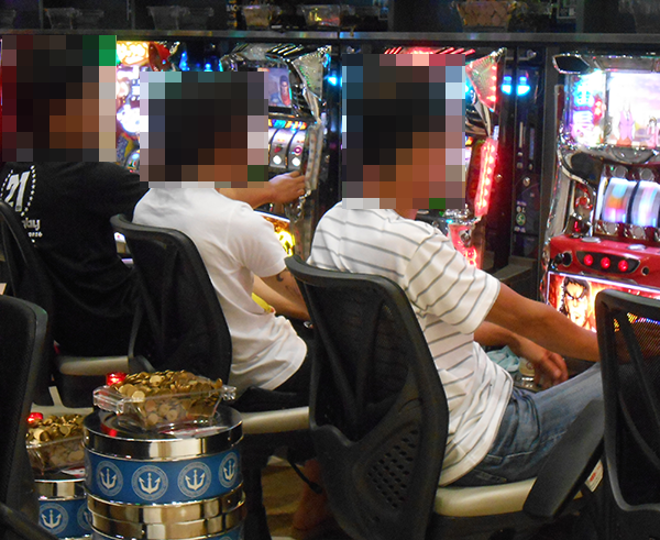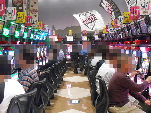 16時を過ぎたころの20円パチスロは、定番であるジャグラーシリーズがとくに盛況となっていた。