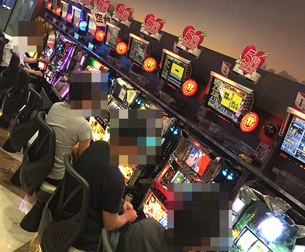 5円パチスロにも、笑顔で遊技を楽しんでいるプレイヤーが多く、華やかな場面もみられた。