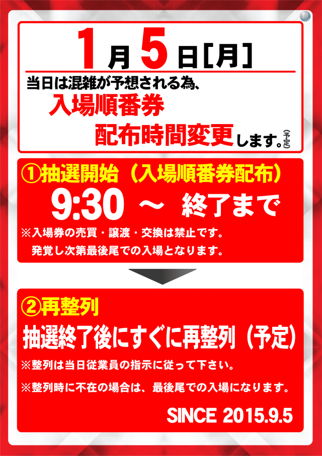 1月5日(月) 抽選開始9:30(予定)