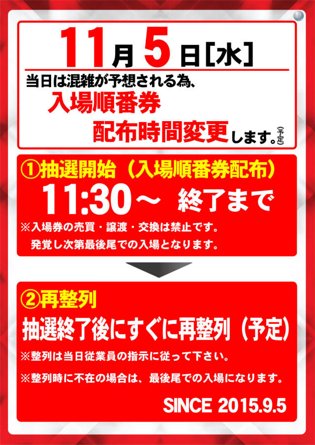 1位 11月5日(水) 2位 10月25日(土) 3位 11月6日(木)
