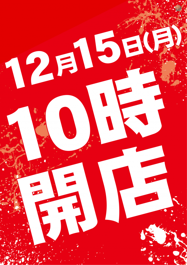 12/20(土) 加熱式たばこ喫煙エリア誕生 10時開店予定