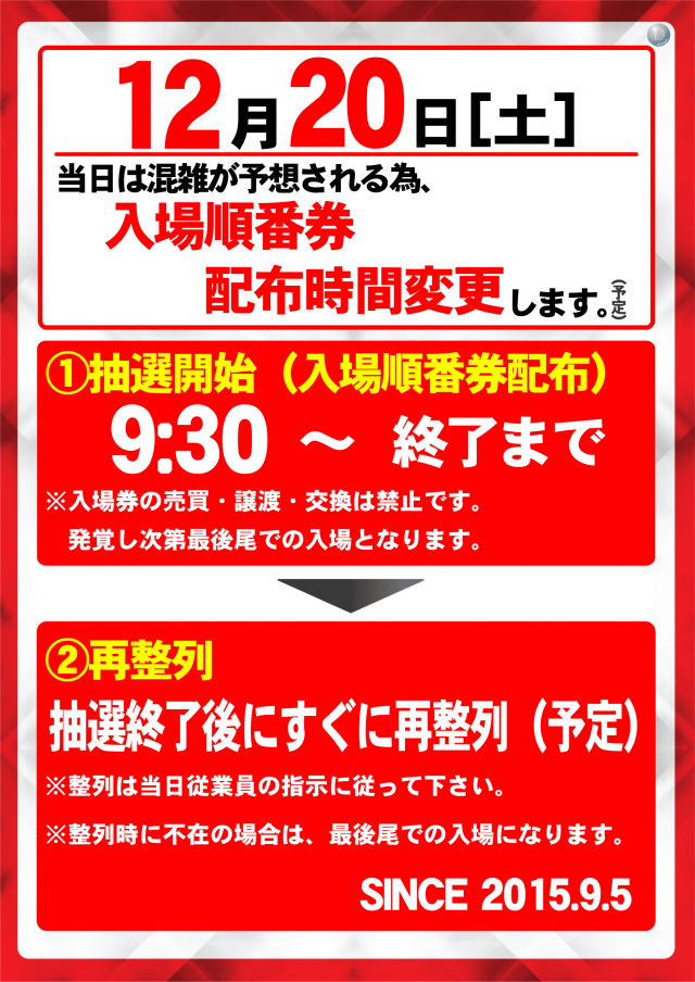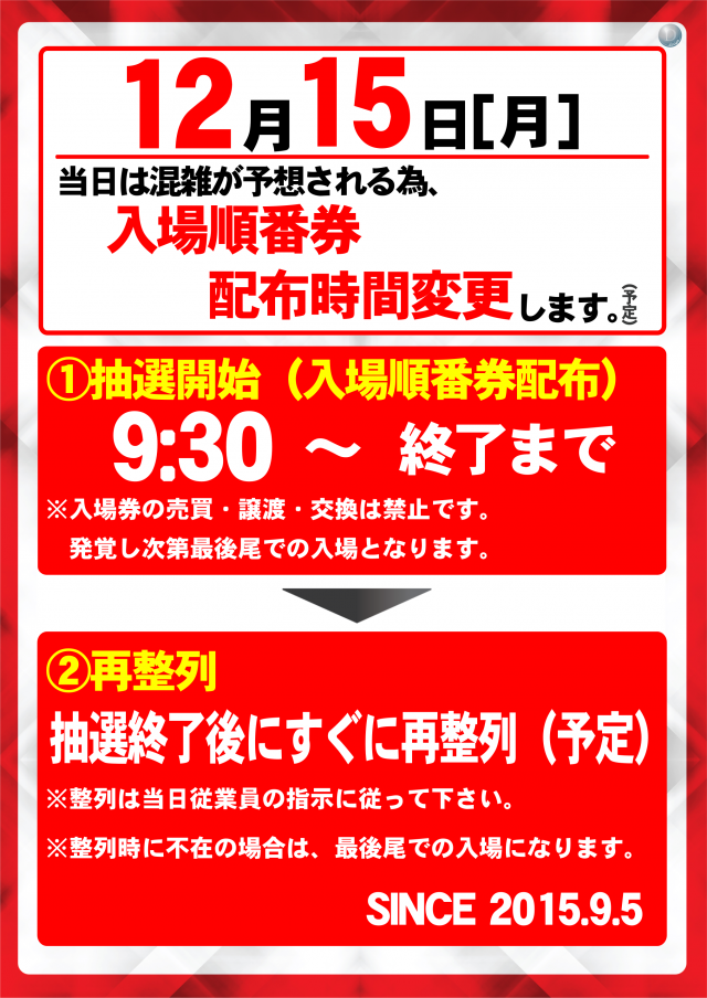 12月15日(月) 抽選開始9:30(予定)