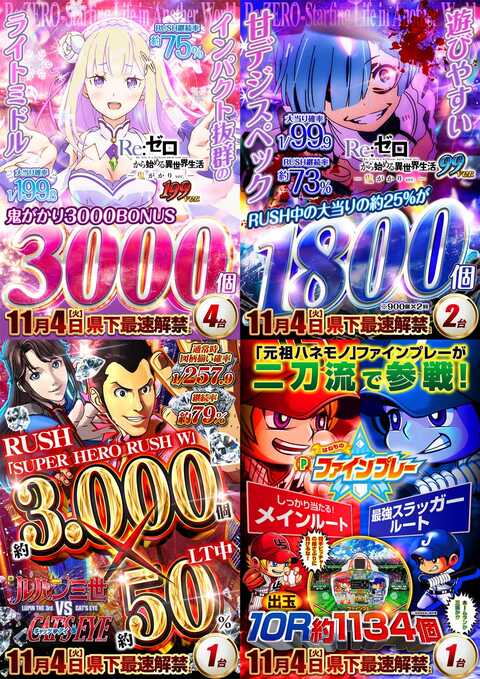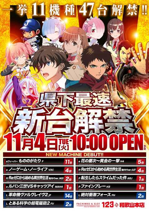 11月6日[木]最新台最速解禁済み!全館10時開店!