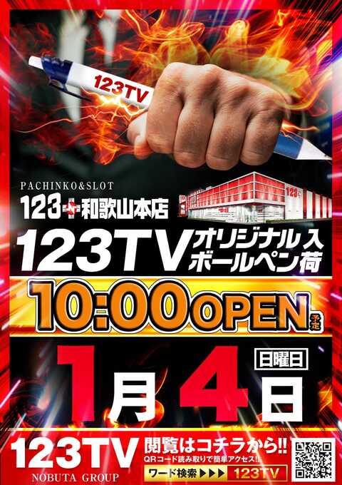 4日(日)全館10時開店!!123ボールペン&賞品入荷!!