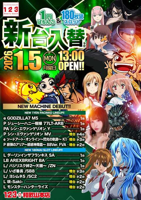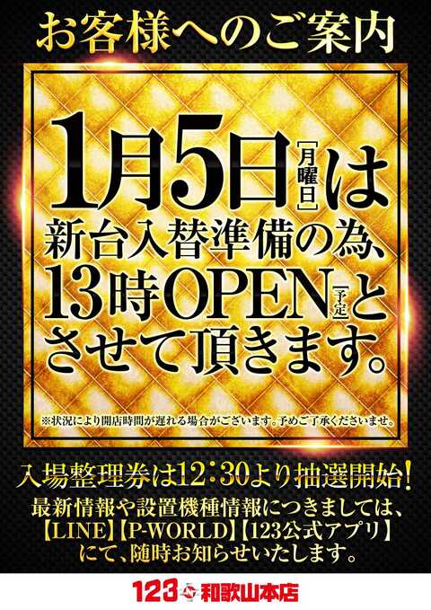 1月5日[月]スロパチ賞品入荷!全館13時開店!