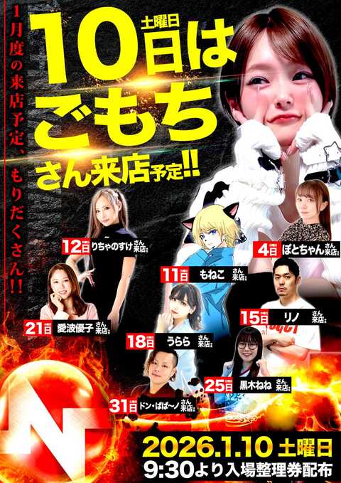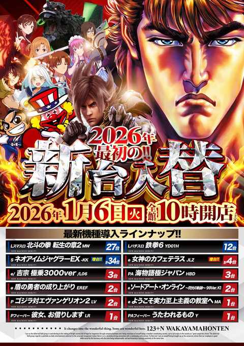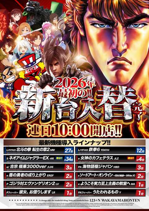 1月9日[金] 新台入替完了!全館10時開店!