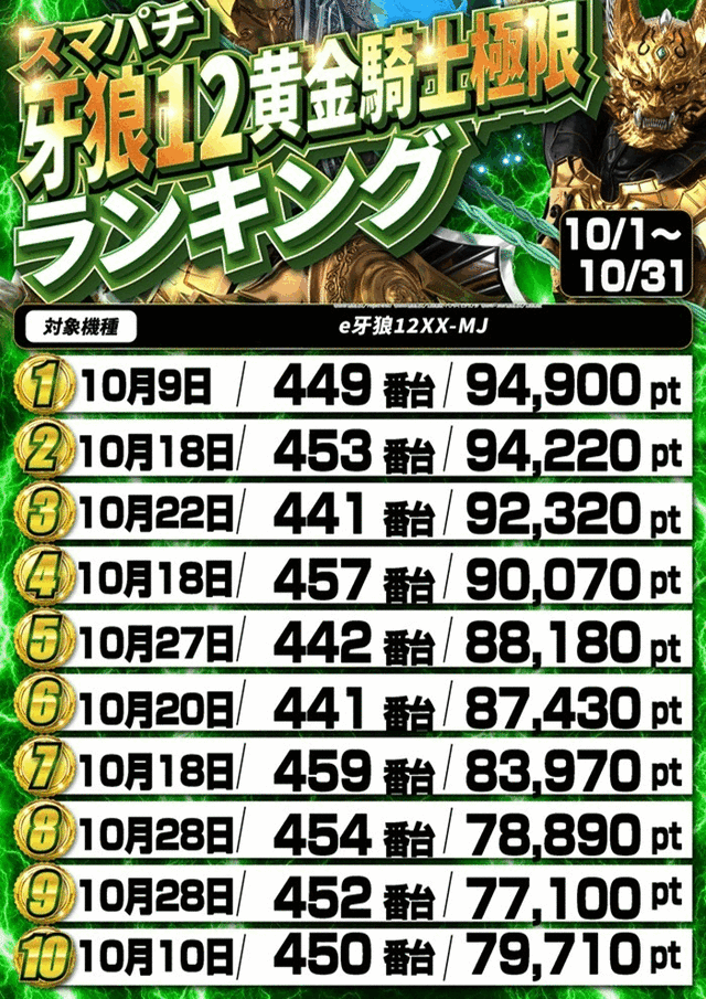 1位 10月18日(土) 2位 11月7日(金) 3位 11月8日(土)