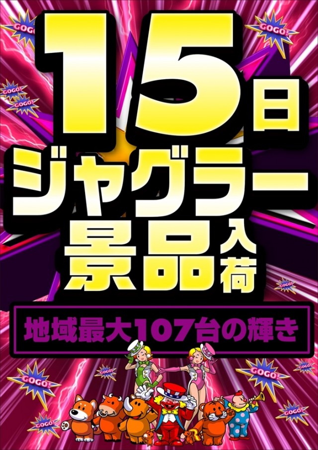 7月15日(火)ジャグラー景品入荷!炎炎オススメ!10時開店