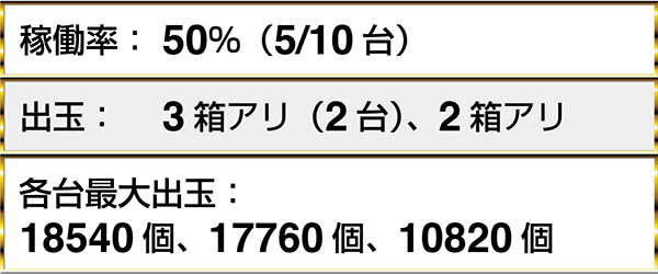 『ぱちんこCR真・北斗無双』や『ぱちんこ GANTZ:2』など、4機種以上の最大獲得出玉が10000個を上回っていた。