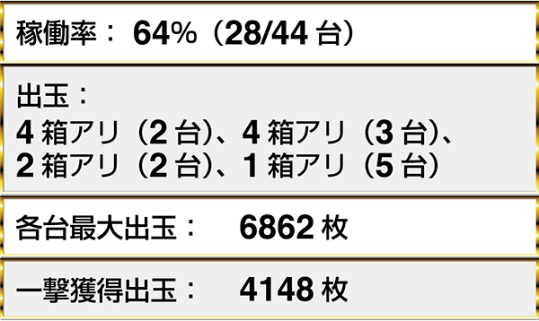 ・『パチスロディスクアップ』の7台に1箱以上の出玉アリ