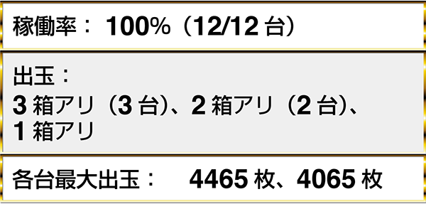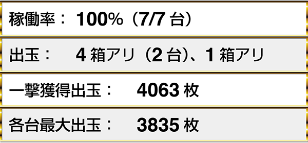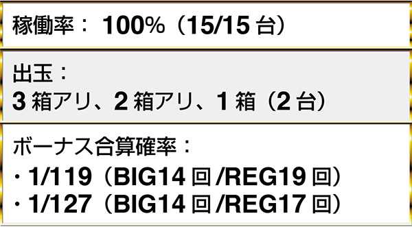 『アイムジャグラーEX-AE』も満席となっており、ボーナス合算確率が1/130を上回るデータもみられた。