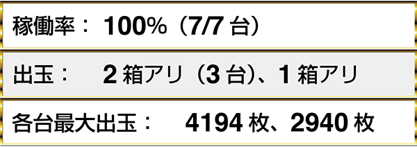 『バジリスク~甲賀忍法帖~絆』は満席となっているうえに、半数のプレイヤーが2箱以上の出玉を獲得。