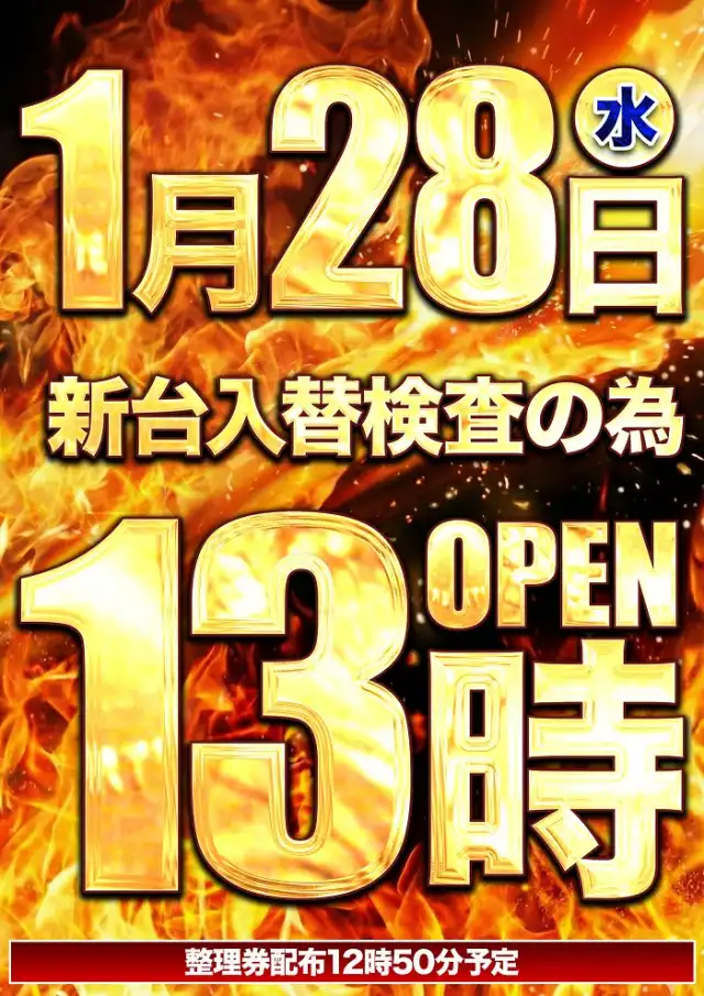 ★1月28日(水)~新台入替検査の為~お昼13時開店★