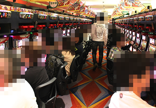 5円パチスロもフル稼働となっており、パチスロの全体が大きな活気に満ちあふれていた。