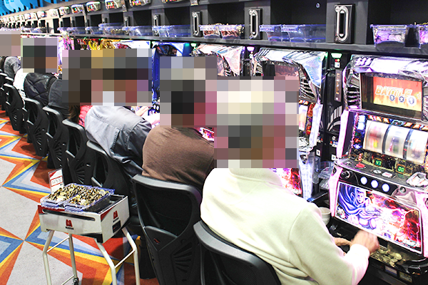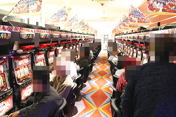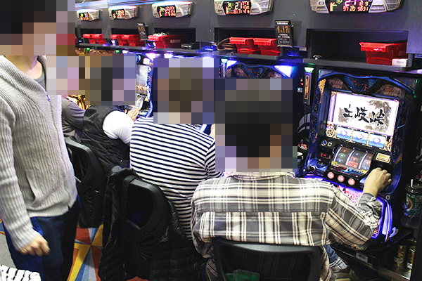 とくに、「ニューアイムジャグラーEX」は立ち見のプレイヤーもいるほどに注目度が高かった。