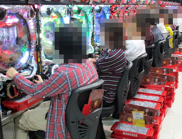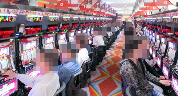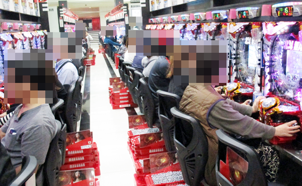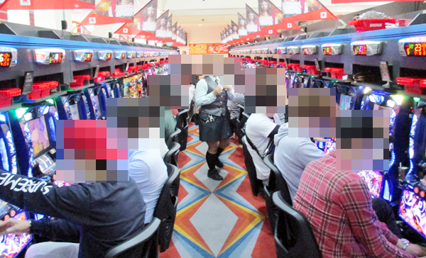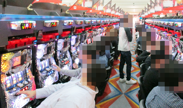 ホール内の様子をみてみると、パチンコ・パチスロコーナーはともに多くのプレイヤーが集まるにぎやかな状況となっていた。