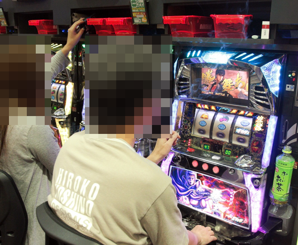 「パチスロ北斗の拳 強敵」や「パチスロ北斗の拳 転生の章」、ジャグラーシリーズなどもにぎやかな状況となっており、楽しそうな笑顔をみせるプレイヤーが多数。