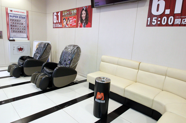 レストスペースに大型のマッサージチェアが用意されているところも魅力的といえるだろう。