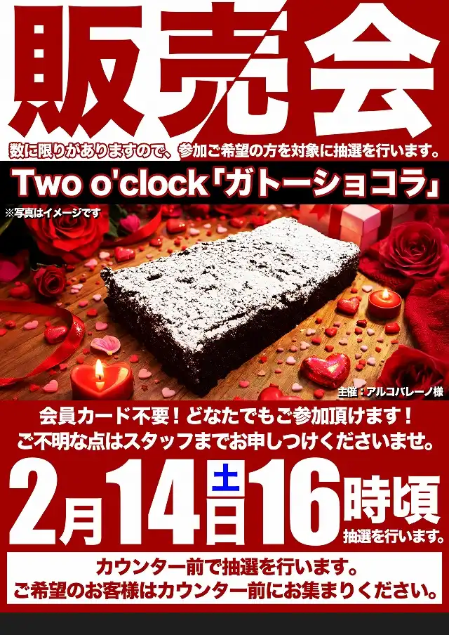 2月14日(土)10時開店!ガトーショコラの販売会実施予定!