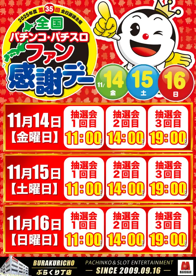 11月11日(火)朝10時開店!入場順番抽選9時45分から!