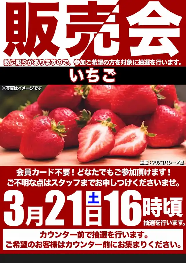 3月21日【土】朝10時開店!いちご販売会開催♪