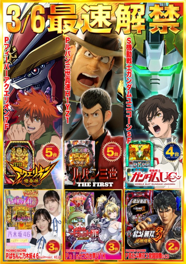 3月5日【日】新台入替完了!あさ10時オープン!