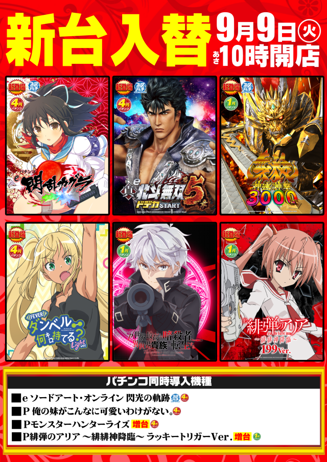 4円パチンコ:238台 1円パチンコ:216台 0.5円パチンコ:38台 |