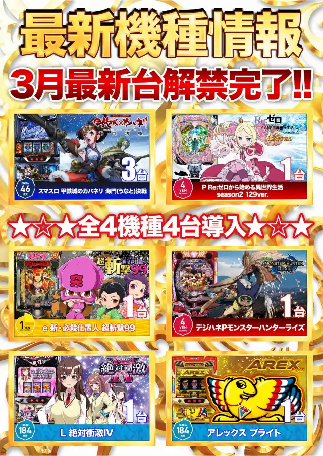 ★3月6日【金】最新2機種解禁完了!あさ10時オープン!
