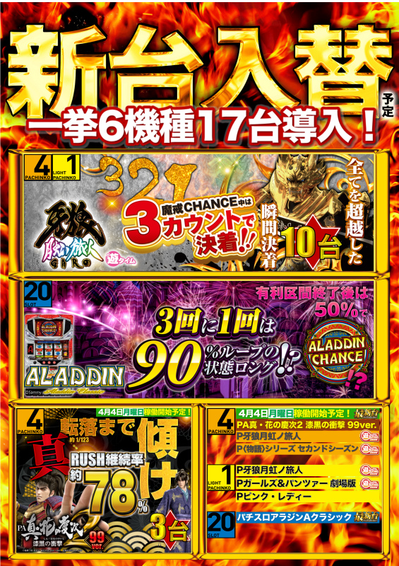 3月30日【水】☆新台6機種17台導入済★朝10時オープン☆