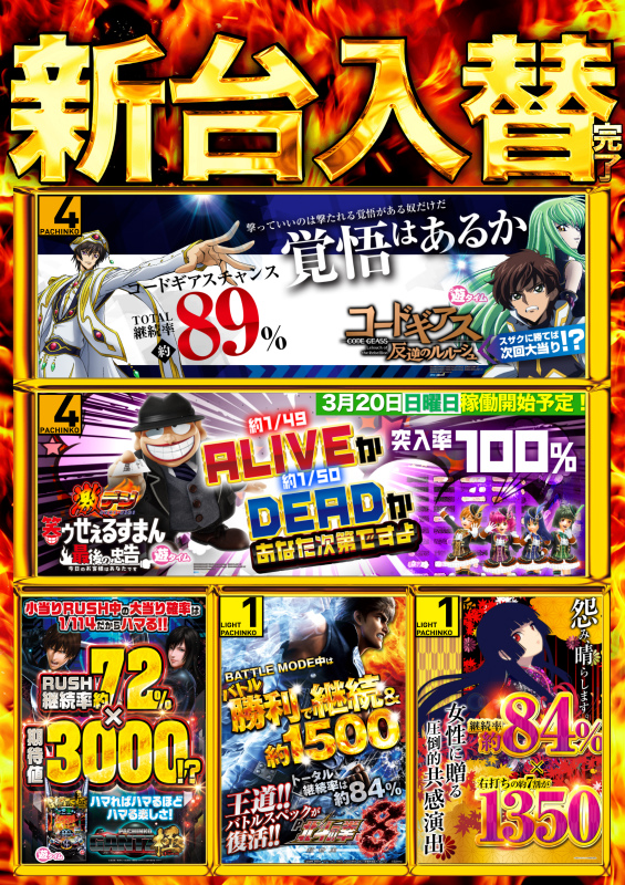 3月24日【木】最新台稼働開始済み!朝10時開店!