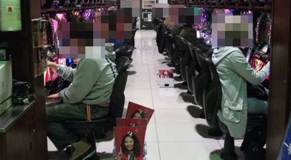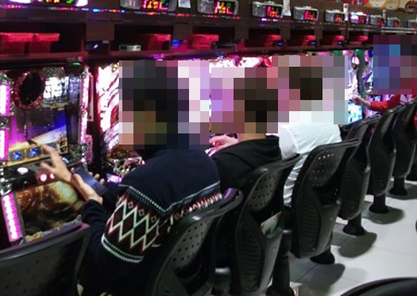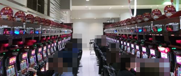 1円パチンコも定番の海物語シリーズや「CR真・花の慶次」といった人気機種を中心に、ほぼ満席と活気づいていた。