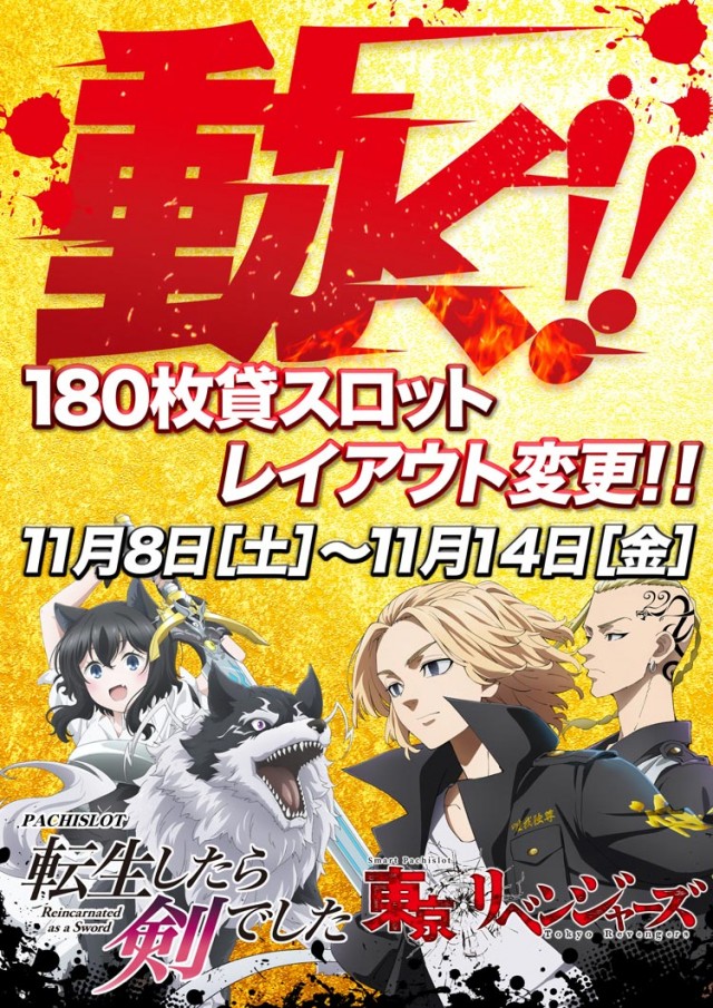 [1000円/46枚]スロ:235台 [1000円/180枚]スロ:70台 総台数305台設置 |
