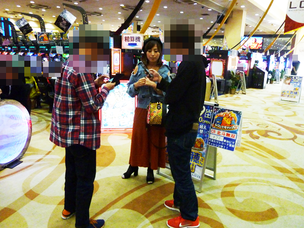 華やかな笑顔をみせつつ、この日は実戦機種に「ぱちんこCR真・北斗無双」をチョイス。