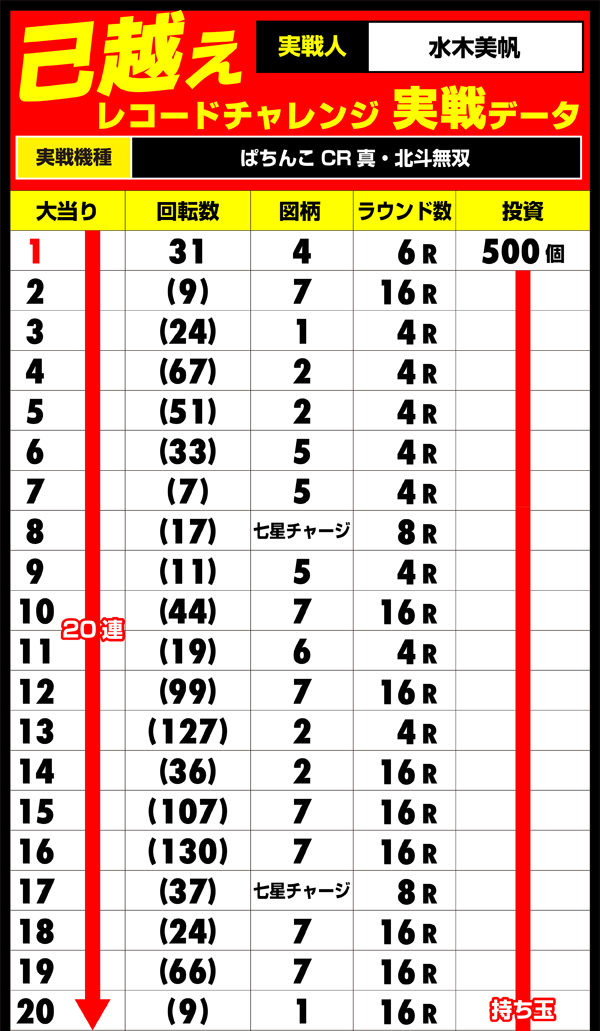 総大当り回数だけでなく、獲得出玉の最高記録も更新し、超優秀な成績で1日を終える水木美帆であった。