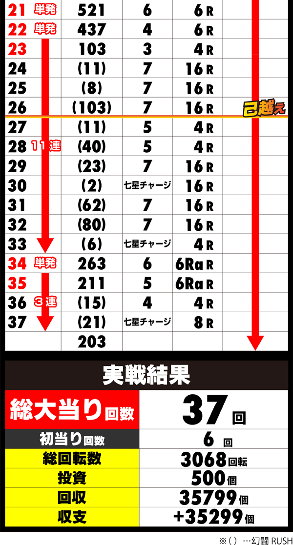 この日に確保した台の過去最高大当り回数は26回。低いとは言えないものの、決して高くはない目標である。