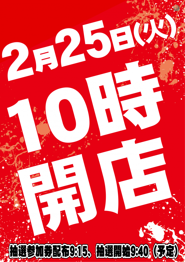 本日2月25日(火) 抽選参加券9:15配布(予定)