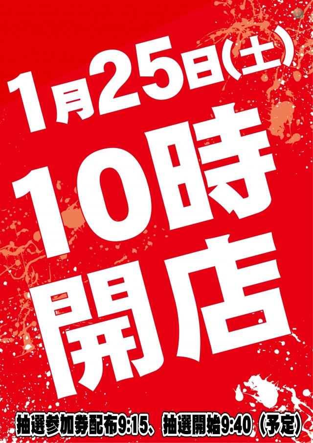 明日1月25日(土) 10時開店(予定)