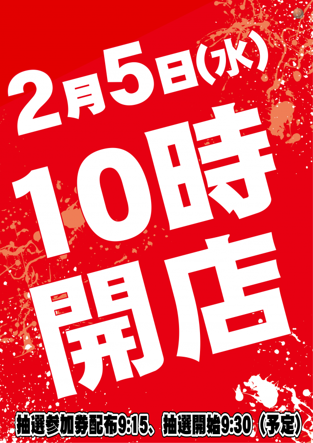 明日2月5日(水) 10時開店(予定)