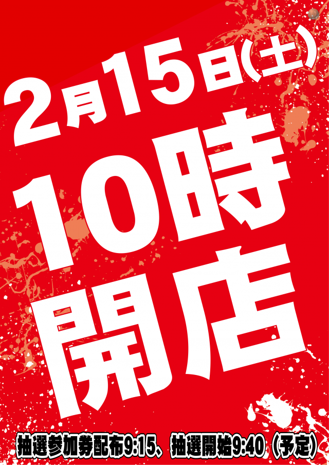 明日2月15日(土) 10時開店(予定)