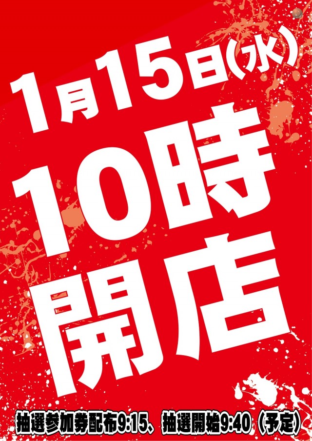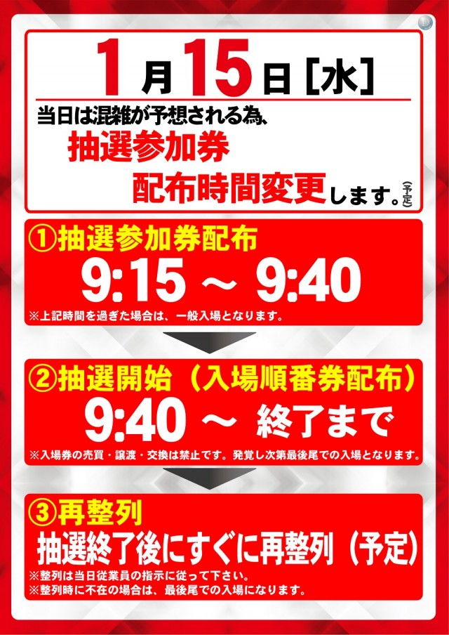 本日1月15日(水) 抽選参加券9:15配布(予定)