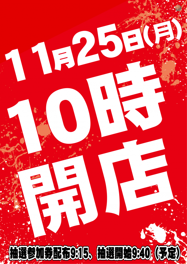 本日11月25日(月) 抽選参加券9:15配布(予定)