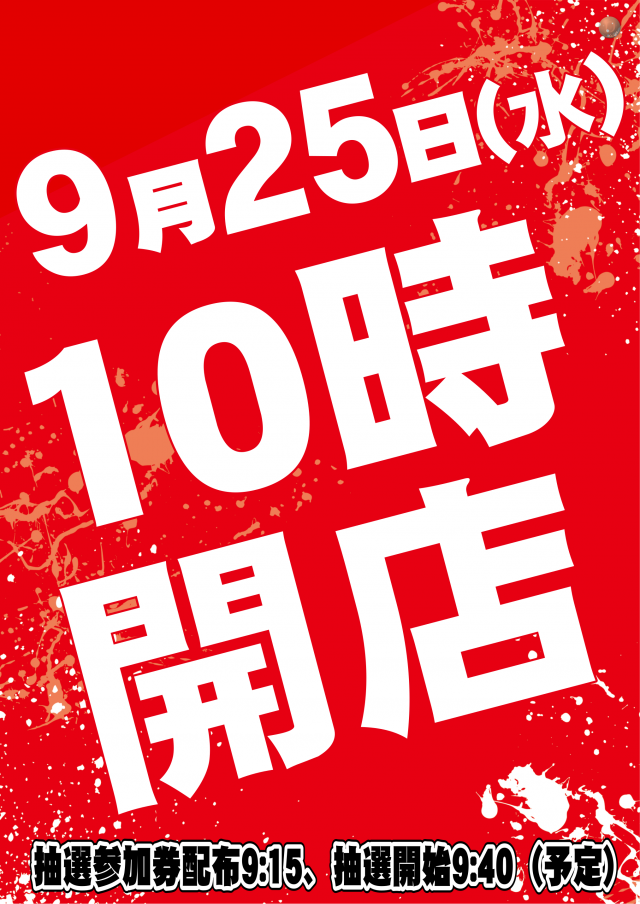明日9月25日(水) 10時開店(予定)