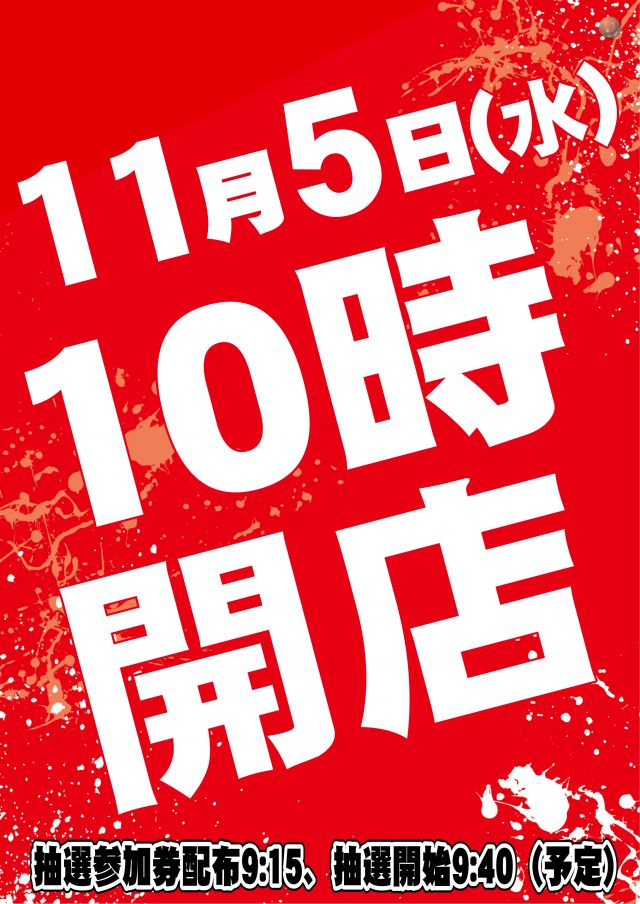 明日11月5日(水) 10時開店(予定)