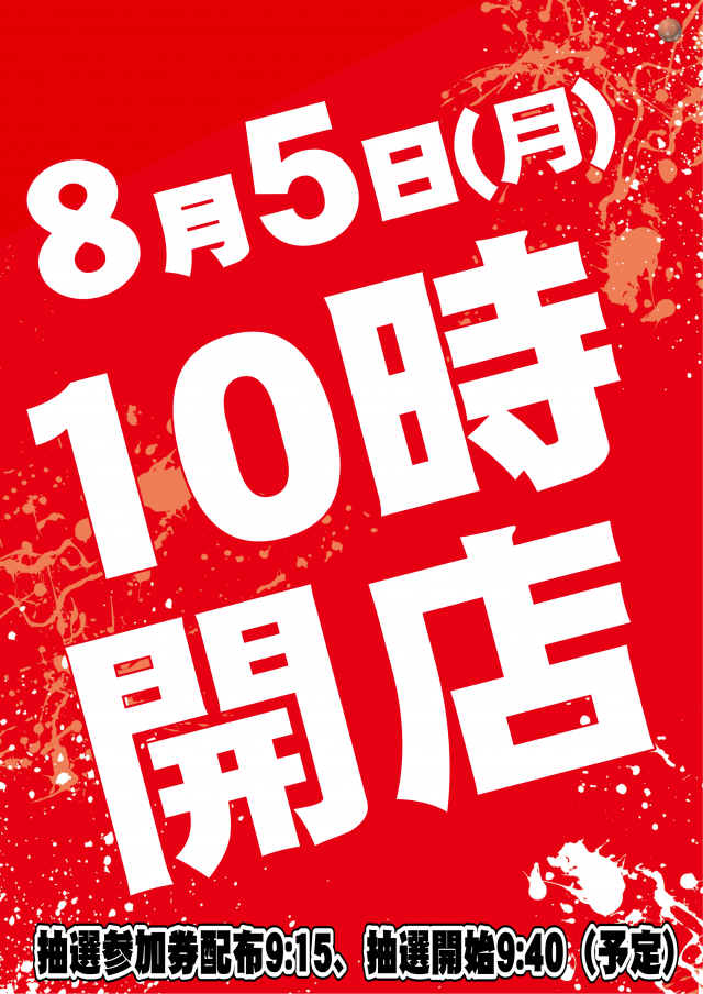 明日8月5日(月) 10時開店(予定)