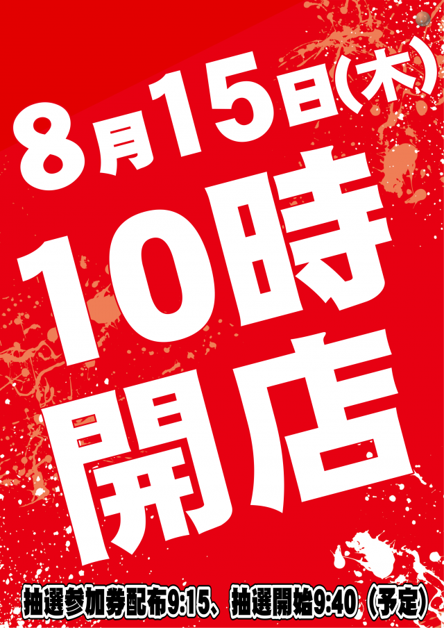 明日8月15日(木) 10時開店(予定)