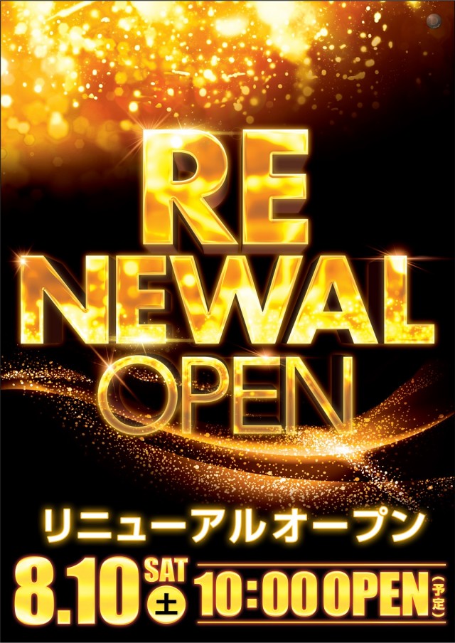 明日8/10(土) リニューアルオープン!10時開店(予定)