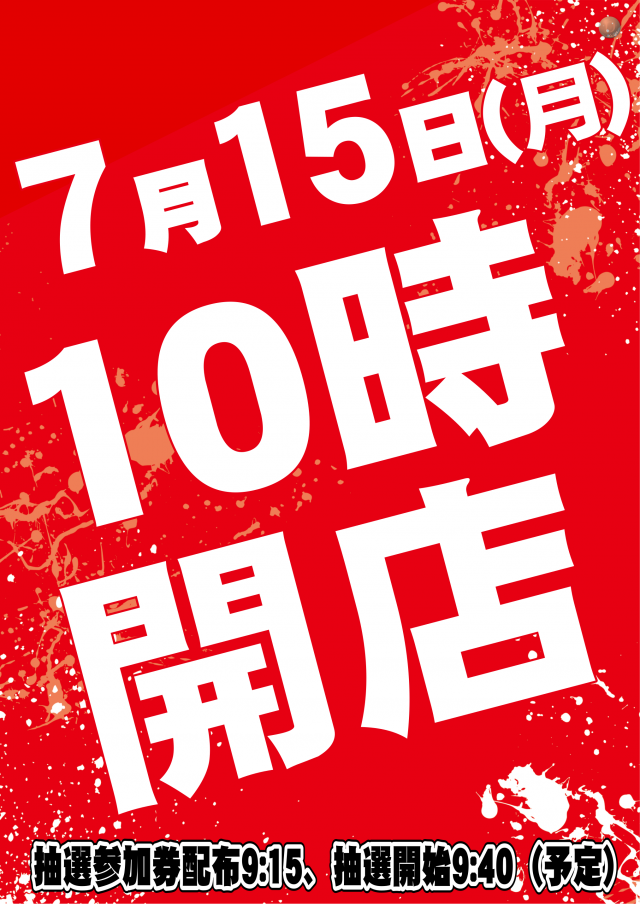 本日7月15日(月) 抽選参加券9:15配布(予定)