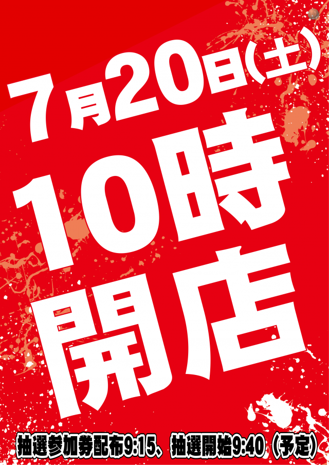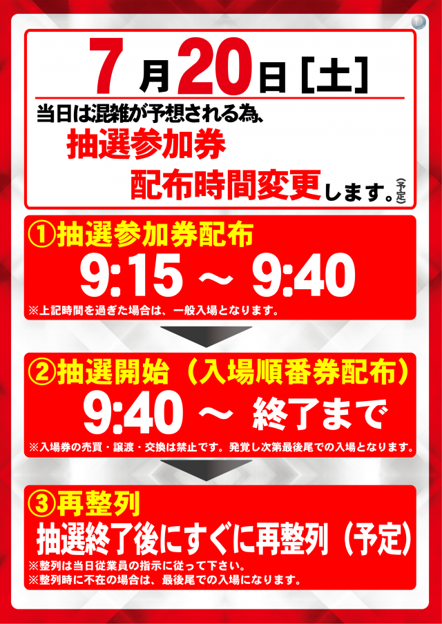 本日7月20日(土) 抽選参加券9:15配布(予定)